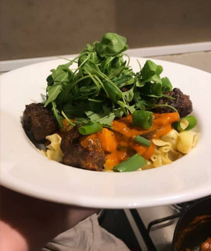 - Tagliatelle met geroosterde paprikasaus en gehaktballetjes
