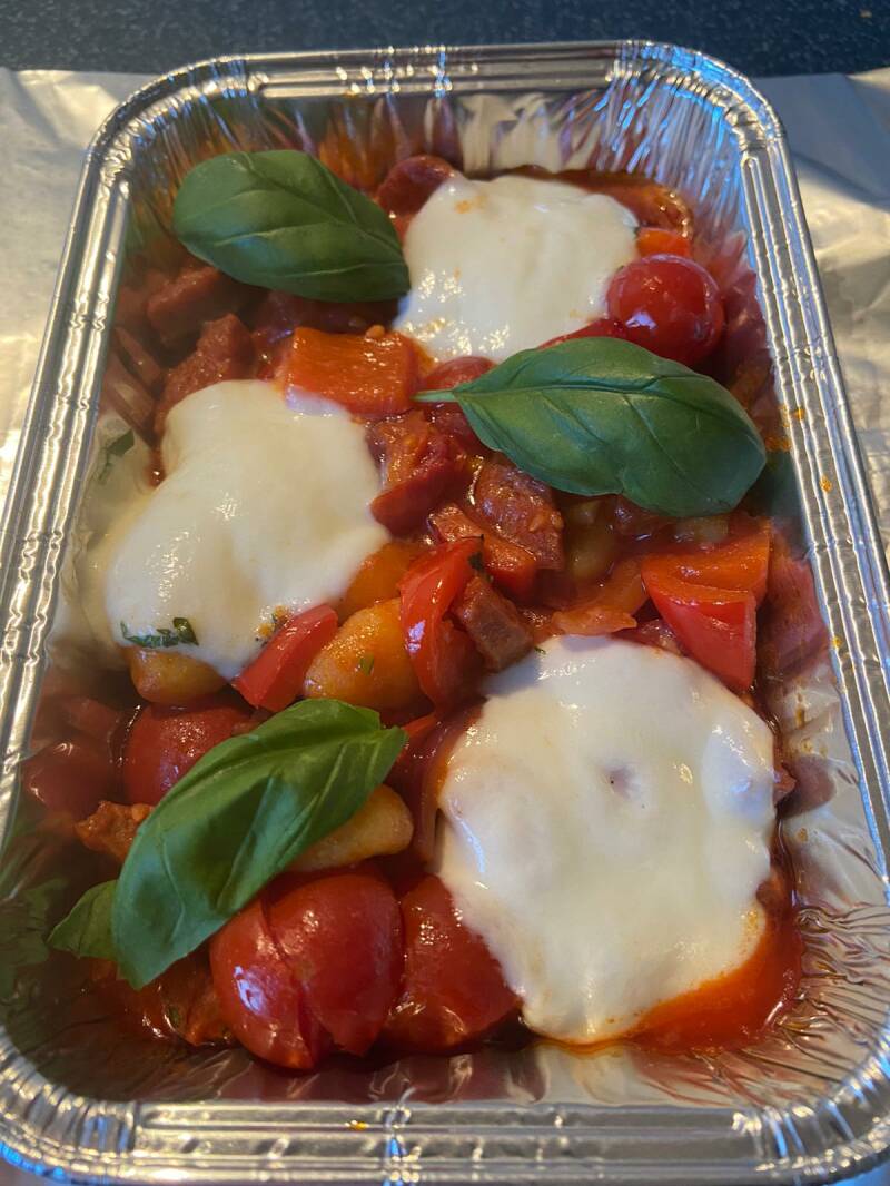 - Gnocchi met chorizo, cherrytomaat, paprika & mozzarella (V)